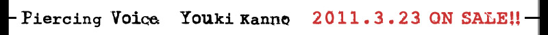 ![]() ![]() 「Piercing Voice」(ピアシング・ヴォイス)カンノユウキ 2011年3月23日発売¥2000(税込) OMCE-1001 “二世の契り”絵柄バックジャケット仕様 大ヒットゲーム「薄桜鬼 新選組奇譚」の第二弾ゲーム「二世の契り」のオープニング&エンディングを担当し今最も注目されているヴォーカリスト・カンノユウキ、いよいよ待望の1stアルバム・リリース!! 都会の少女特有の危うさと微熱感を織り込んだようなシリア・スチューン、バンド“ユーキングスペクタクル” との熱い共演ナンバー、さらにラストの「DEAD END」は、レーベルメイトの青葉りんごをフィーチャーしたナンバー! ≪収録曲≫
